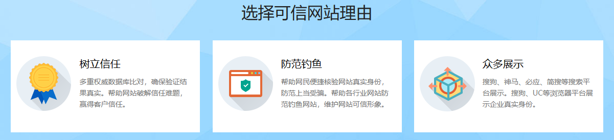它通過對域名、網(wǎng)站、工商登記或組織機(jī)構(gòu)信息進(jìn)行嚴(yán)格交互審核來驗(yàn)證網(wǎng)站真實(shí)身份。